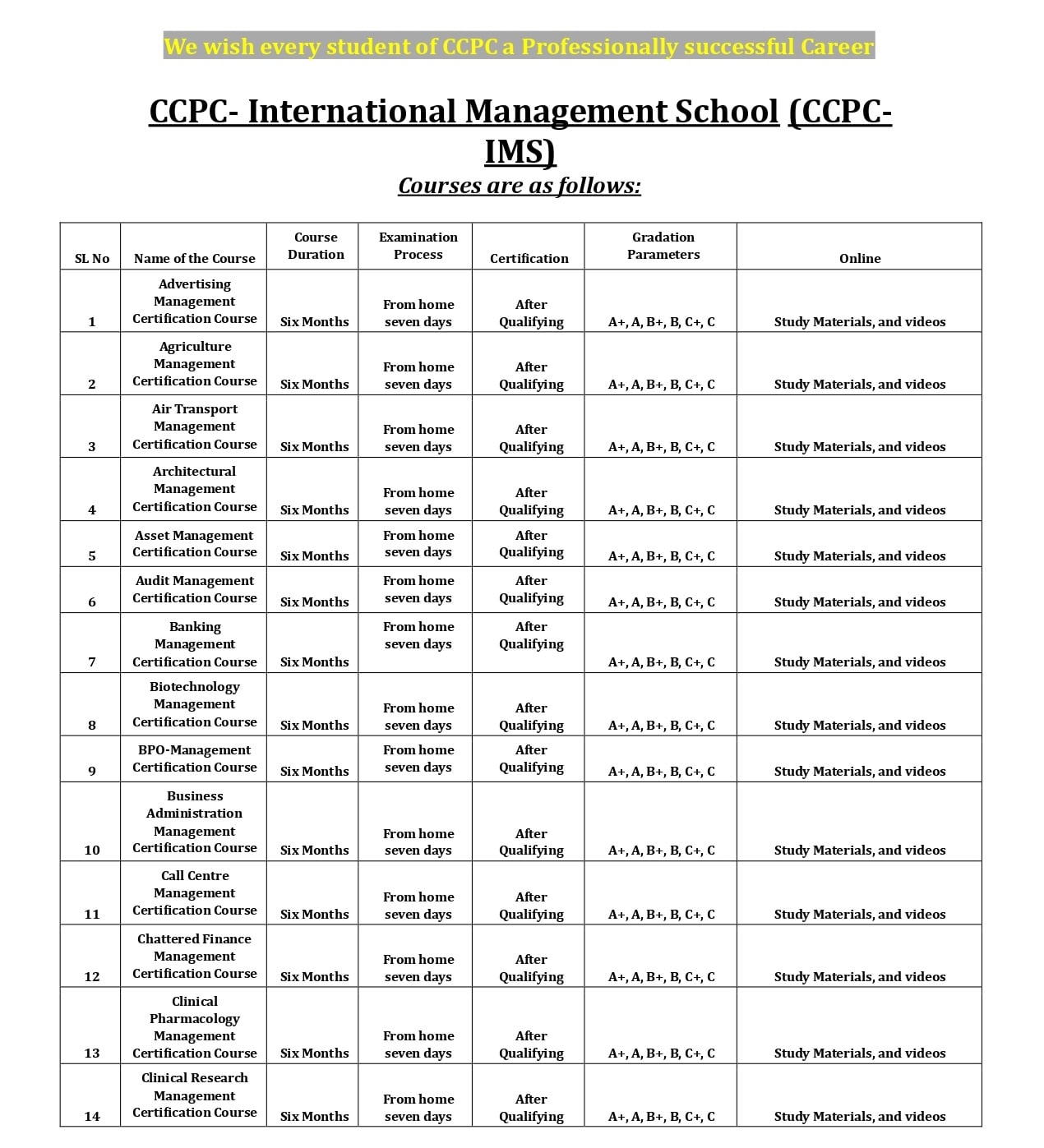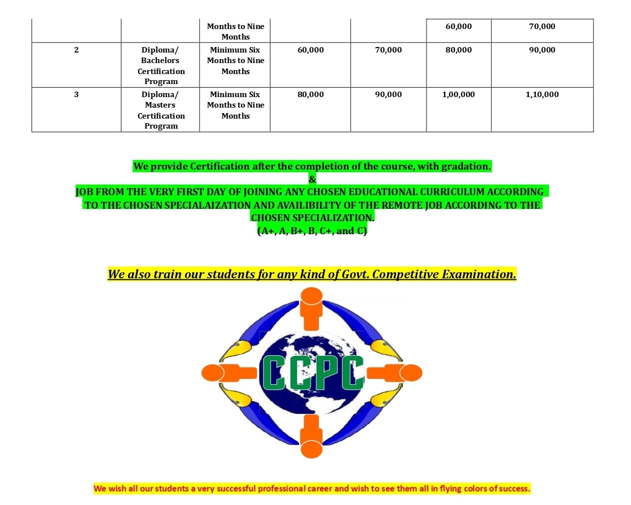 with jobs from the very first day of joining any academic curriculum of CCPC-IMS,